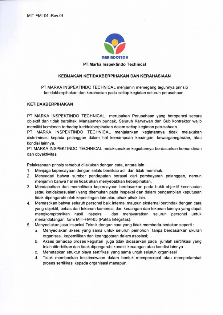 Kebijakan Ketidakberpihakkan dan Kerahasiaan Perusahaan